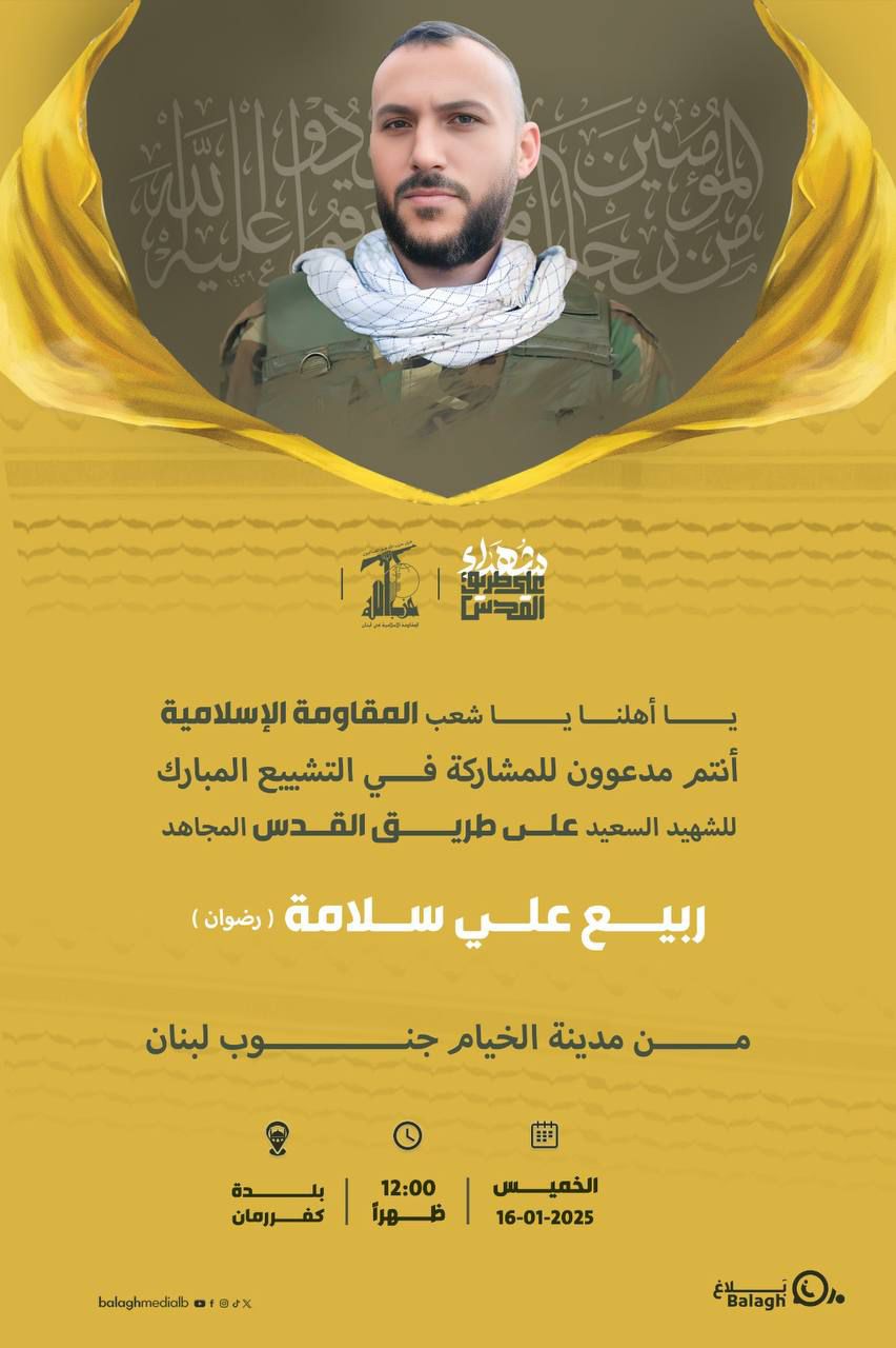 إنتقل إلى رحمته تعالى المأسوف على شبابه الشهيد ربيع علي سلامة