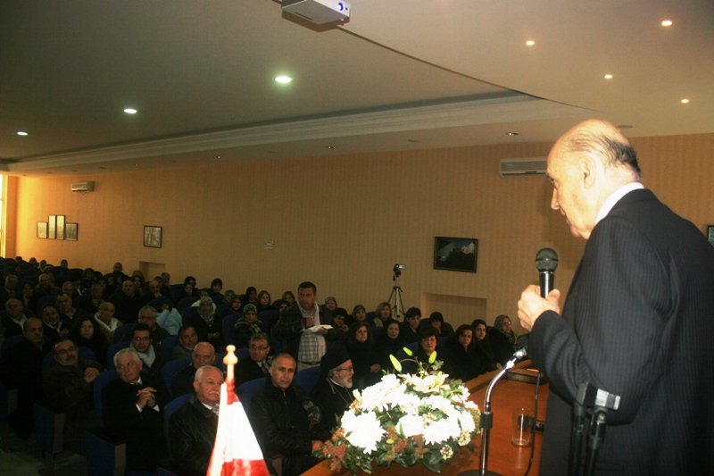 * ألقى الكلمة الدكتور كامل مهنا، رئيس مؤسسة عامل الدولية، ومنسق عام تجمع الهيئات الأهلية في لبنان، بمناسبة تكريم الدكتور حليم القسيس. 27-02-2011 في الخيام.