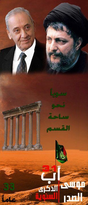 لمناسبة الذكرى السنوية الثالثة والثلاثين لتغييب سماحة الامام القائد السيد موسى الصدر ورفيقيه اعادهم الله تتشرف حركة امل بدعوتكم للمشاركة في المهرجان الخطابي الكبير.