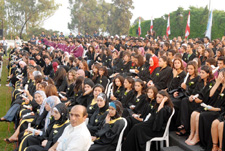 وتوجهت الحريري الى الخريجين بالقول: من حقّكم علينا أن تتعلّموا وتستقروا وتنجحوا وأن ترفضوا كلّ ما يهدّد أحلامكم ويقف في طريق مستقبلكم. نعم، من حقّ أبناء الشعب الفلسطيني أن يتابعوا مسيرتهم بالعودة إلى وطنهم وإقامة دولتهم المستقلة وعاصمتها القدس الشريف. ومن حقّ أبناء لبنان أن يرفعوا الصوت عالياً في وجه كلّ من يعبث بوطنهم وبمستقبلهم. وإنّنا نعاهدكم بأنّنا سنظل أوفياء لدماء الشهداء وفي مقدّمتهم الرئيس الشهيد رفيق الحريري وكلّ شهداء لبنان الذين ضحّوا بأنفسهم وأرواحهم، وسيبقى العلم وسيلتنا للنّهوض والتّقدّم، وسنبقى نحترم الرأي والرأي الآخر وإرادة الناس في حريتهم وتعبيرهم عن وجودهم على قاعدة الحفاظ على السلم الأهلي ومسيرة النّهوض والتحرير والبناء والسيادة والإستقلال. وكما حقّقنا بنجاحكم الردّ الكبير على العدوان واستهدافاته وعودة أهلنا إلى مدنهم وقراهم فإنّنا من خلال نجاحكم نستلهم العزيمة ونقول لأعداء لبنان ان اللبنانيين كلّ اللبنانيين سيتجاوزون محنتهم وسيعود لبنان وطناً للحرية والعلم والمعرفة، وطناً للأشقاء والأصدقاء، وسيبقى الشعب اللبناني شقيقاً حاضناً للشعب الفلسطيني وقضيته العادلة حتى عودته إلى دياره واستعادة حقوقه.