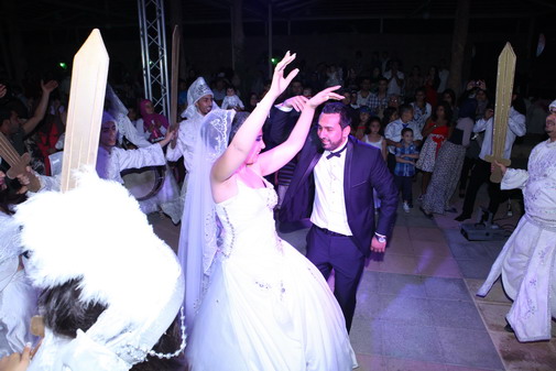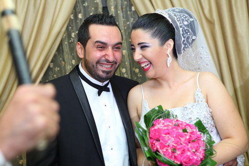 العروس الحسناء درست التربية المدنية والعريس يملك مطعماً مميزاً في وسط ساحة بلدتنا الخيام.