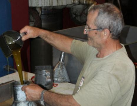 في معصرة بسّام، ينزل الزيت كالذهب الخالص السائل من أسطوانة فضيّة، وبقايا الزيتون على يدي الشيخ سلمان أبو ضرغم كبطاقة هويّته. يتنقّل الشيخ بين المعصرة وخزانات «الستانليس»، وهو يتمتم «اسمالله اسماالله»، وعيناه لا تحيدان عن مراقبة الزيت الذي يميل الأصفر فيه إلى الأخضر، ورائحته تستثير كلّ الحواس.