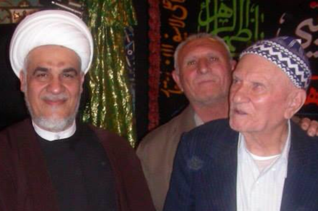(في الصورة: المرحوم الحاج محمد علي نصّار (أبو خليل )، الشيخ مرتضى الشهرودي، وفي الخلف الحاج خليل نصّار)