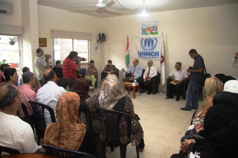 ثم عقد جلسة مع نازحين ونازحات سوريين عرضوا معاناتهم الحياتية، من عدم توفر الاستشفاء، والسكن، ومتابعة الدراسة خاصة للطلبة الجامعيين، وسوء المعاملة من قبل الجهات المعنية بالتسجيل والمساعدات بالإضافة للمضايقات الأمنية، ولقد عرض النازح محمد يوسف بان سيارة قد صدمته فأصيب بكسور في ساقه وكتفه فبقي يحاول لمدة أسبوع تأمين العلاج في المستشفيات على نفقة المنظمات الدولية فلم يجد من يقدم له المساعدة إلى أن تبرع أحد الخيرين ودفع نفقة علاجه في المستشفى. ولقد وعد السيد بلامبلي بمراجعة المنظمات الدولية والحكومة اللبنانية لمواجهة هذا الواقع الصعب حيث ان عدد النازحين بارتفاع مستمر.