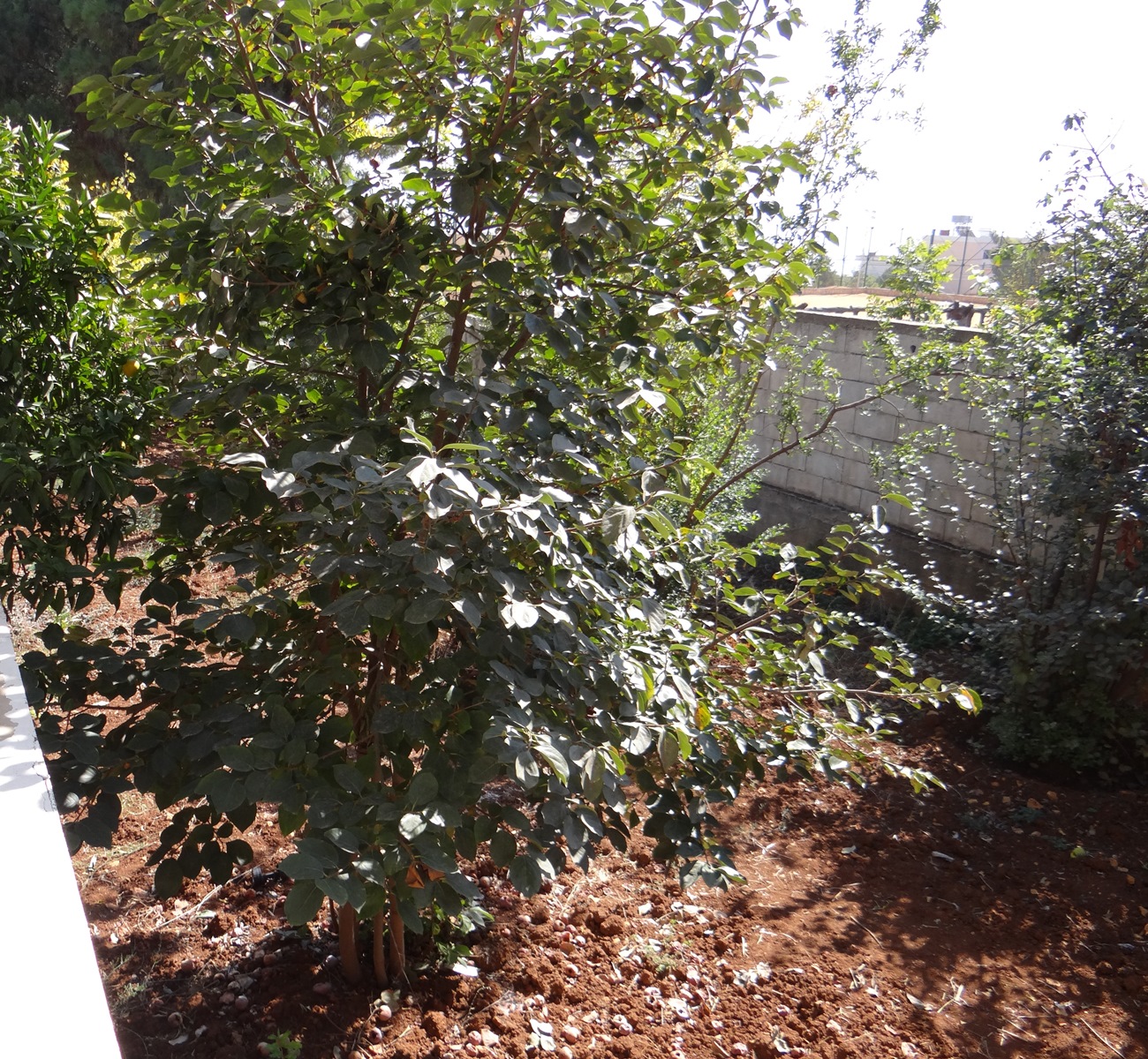 بناء حجري تحيطه حديقة تحوي على أشجار مثمرة متنوعة معروض للبيع في الخيام.