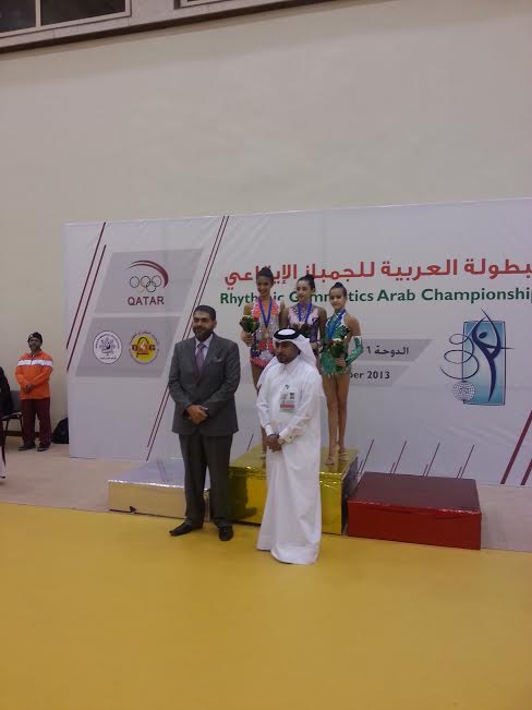 [ الفردي العام: 1 - بسمة قطاي (المغرب)، 2 - أمينه شطيبة (تونس)، 3 - أماني الكافي (تونس) وهي تأهلت لنهائي الأدوات الأربع للجمباز الإيقاعي.