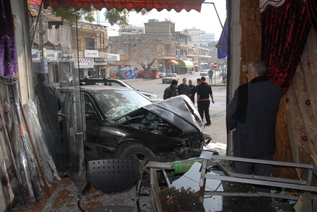 وفي التفاصيل ان شخص من التابعية السورية كان يقود سيارة بي ام دبليو قرابة الثامنة من صباح اليوم بسرعة جنونية قادما من شارع محمود فقيه، عندما فقد السيطرة عليها لحظة اقترابه من محيط النادي الحسيني فجنحت به بسرعة مريب واجتاحت محلات تجارية لمؤسسة جهاد برجاوي لبيع الالبسة والثياب ، وألحق اضرار مادية كبيرة فيها، ولم يتسبب بوقوع اي اصابات في الارواح.