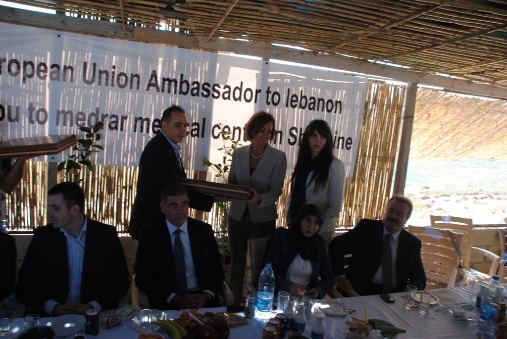 لبت سفيرة الاتحاد الاوروبي في لبنان أنجيلينا أيخورست دعوة رئيسة جمعية مدرار الخيرية دنيا حراجلي بري لزيارة المجمع الطبي - الرعائي والصحي الذي تقوم الجمعية ببنائه في بلدة شوكين واقامت على شرفها والوفد المرافق لها مأدبة غداء في المجمع هو يضم مستشفى ومركزا لرعاية المسنين وقسما لتأهيل المدمنين على المخدرات .