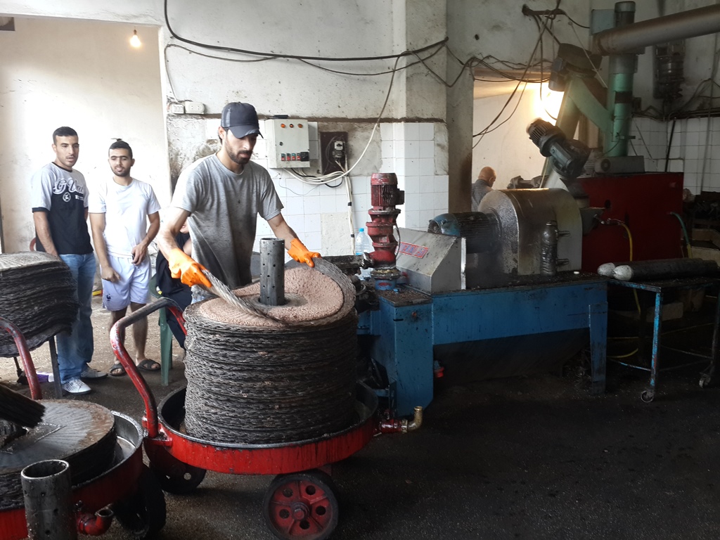 في مواسم الزيت والزيتون يتوقف عمل حسن زريق في ساعة متأخرة من الليل بعد الانتهاء من عصر زيتونه في معصرة "كامل شيري" القريبة من بيته، وبعد تعبئتها في غالونات بلاستيكية، ليعاود عمله في صباح اليوم التالي بجني ثمار الزيتون مجدداً.