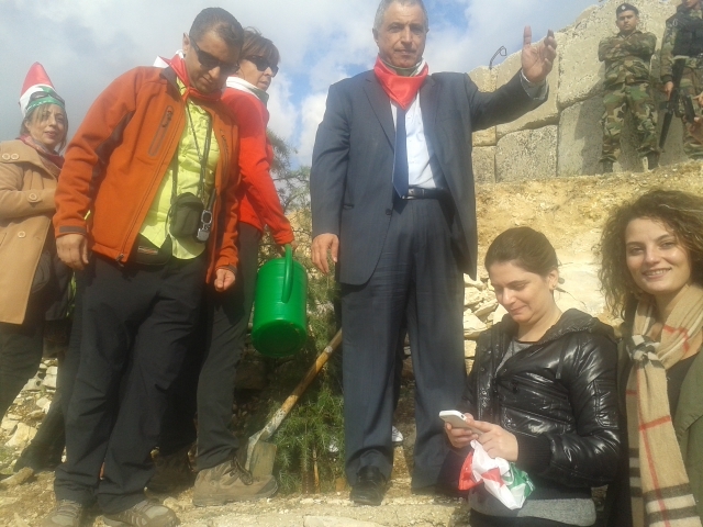 المشاركون يزرعون شجرة ارز عند موقع للجيش اللبناني دعما لصموده