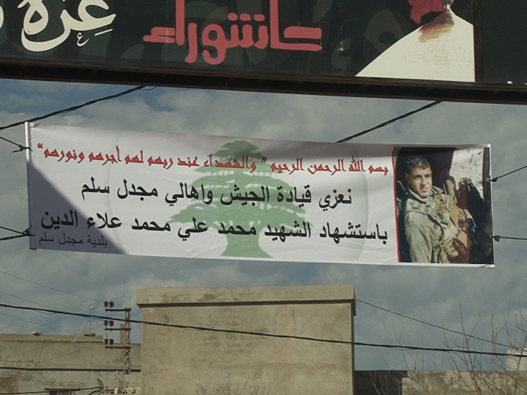 ثم تلا نبذة عن حياة الشهيد محمد علي علاء الدين، من مواليد 11/2/1995-جديدة مرجعيون، وهو من عديد فوج الحدود البرية الثاني، وضعه العائلي : عازب، استشهد بتاريخ 23/01/2015، نتيجة اشتباك مع مسلحين، ثم توجه باسم وزارة الدفاع وقيادة الجيش من عائلة الشهيد واقاربه ورفاقه، باحر مشاعر التعازي والمواساة سائل الله ان يتغمد روحه الطاهرة بواسع رحمته ، وان يمن على الاهل بجميل الصبر والسلوان. عشتم، عاش الجيش وعاش لبنان".