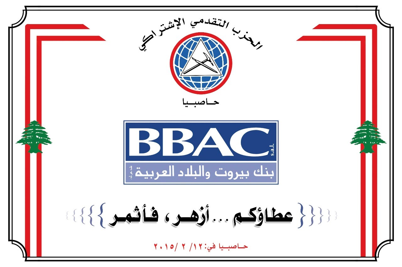 ولمناسبة مرور خمسة عشر عاماً على تأسيس فرع "بنك بيروت والبلد العربية - BBAC" في حاصبيا ، قام وفد من الهيئة الإدارية في الحزب التقدمي الإشتراكي، فرع حاصبيا، ضم الرفيق أمين خير، مدير الفرع، وأعضاء الهيئة الادارية الرفاق جنبلاط النداف، حسام سابق ورفيق سعسوع بتقديم درع تكريمي لمدير البنك السيد جميل زوين وبحضور الموظفين تقديرا لعطاءاتهم المثمرة في الحقلين المصرفي والاجتماعي.