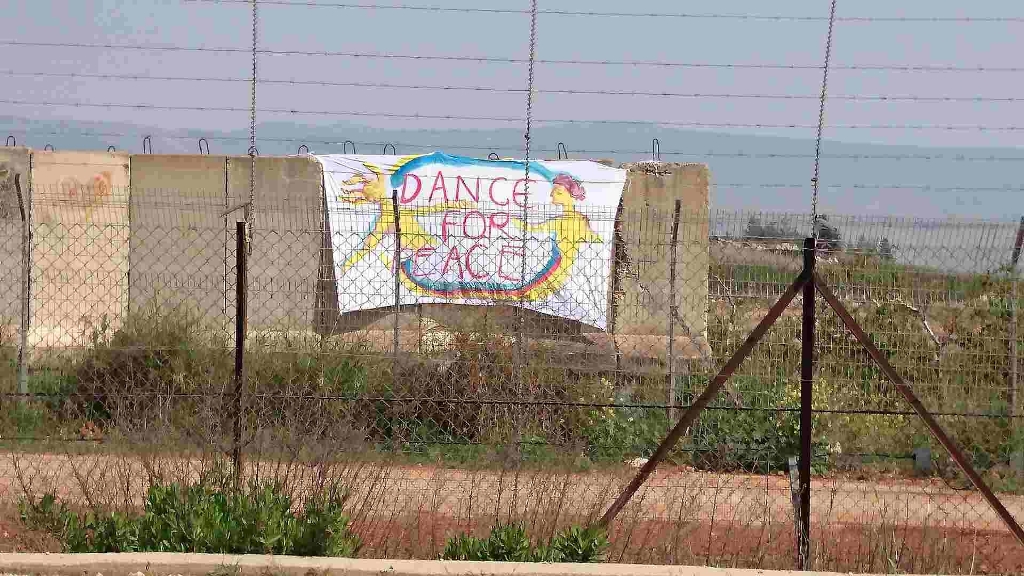 في خطوة غير مسبوقة، اقدم عدد من الفتيات الاسرائيليات بلباس مدني على رفع لافتات على جدار اسمنتي في خراج مستعمرة المطلة الحدودية قرب السياج التقني قبالة طريق عام كفركلا الحدودي : كتب عليها باللغة بالانكليزية "ارقص من اجل السلام"