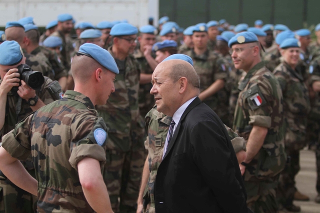 تفقد وزير الدفاع الفرنسي جان ايف لودريان كتيبة بلاده العاملة ضمن إطار القوات الدولية في جنوب لبنان، التي وصلها على متن مروحية دولية حطت به في مهبط المروحيات التابع للكتيبة الفرنسية في بلدة دير كيفا قضاء صور، حيث كان في استقباله قائد كتيبة دامان 23 الكولونيل هازار Hazardوكبار الضباط .