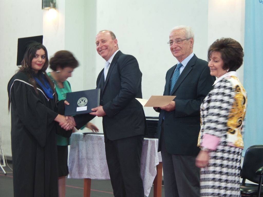 الأستاذ عماد خوري يسلم شهادة تقدير لاحدى الطالبات