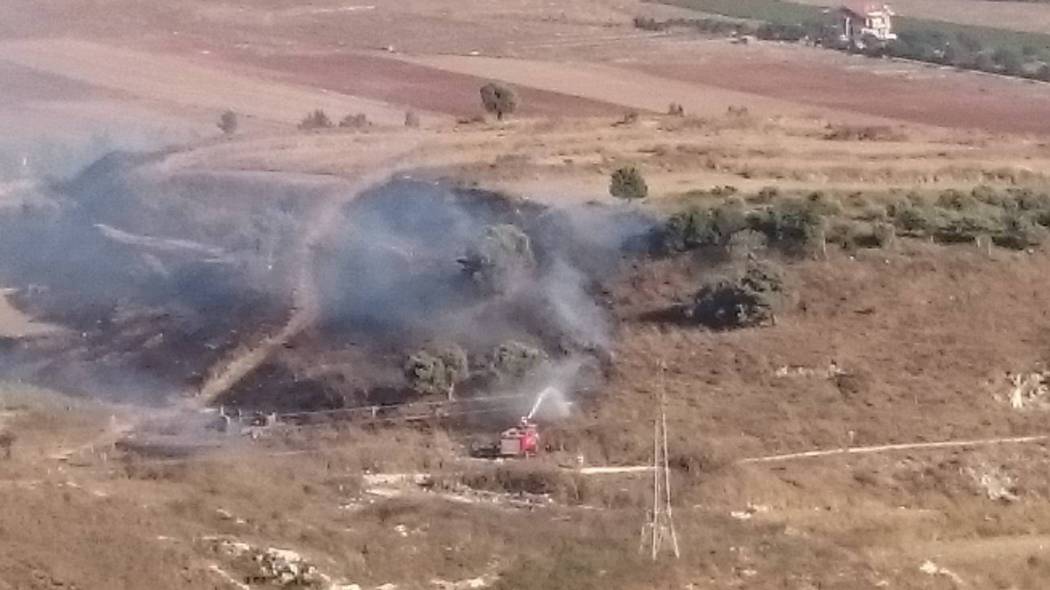 في محيط بركة الدرداة اشتعل حريق في الاعشاب اليابسة وصل الى محاذاة الطريق العام