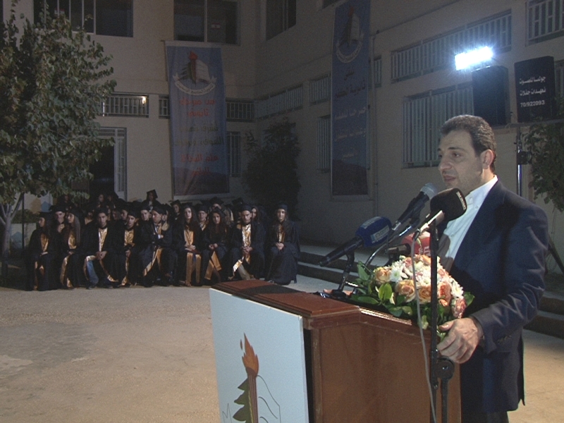 بعد دخول المكرمين بالأثواب الإحتفالية ،والقاء كلمات باسم الطلاب ولجنة الاهل ومدير المدرسة نعمان الساحلي، القى راعي الاحتفال الوزير ابو فاعور كلمة بالمناسبة قال فيها:" للاسف يبدو هذا البلد اليوم كمركب بمئة شراع وكل شراع يفتح صدره للريح وكل ريح تريد ان تقود هذا البلد الى شاطئ ما او وجهة ما. وإذا كانت كل المحاولات السياسية التي تجري اليوم ، لا تبشّر باننا نبحث عن انتاج افضل بل نبحث عن اتقاء المزيد من الشرور ونبحت عن تدارك الازمة . واذا كان ما يجري من شغور في الرئاسة وتعطيل لمجلس الوزراء وتعطيل للمجلس النيابي ، ومن جدل سياسي حول وعلى المؤسسات الضامنة للسلم الاهلي في مقدمتها الجيش اللبناني".
