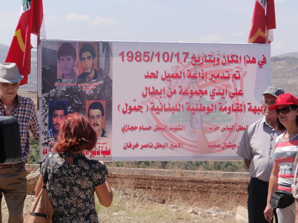 هاهم شهداء جمول اتيناكم بعد ثلاثين عام لتكريمكم ونقول لكم بدمكم تحرر الوطن ومن فوهات بنادقكم اشرقت شمس التحرير ونعاهدكم بان تستمر مسيرتكم فقد تحرر الوطن لكن لم يتحرر الشعب من هذا النظام الطائفي البغيض، نظام الفساد وهدر المال العام، نظام المحاصصة الطائفية نظام مولد للأزمات والحروب كل اطرافه مرتهن ومستقوي بالخارج . ان الشعب اللبناني الذي انتصر على اعتى قوة في الشرق عجزت عنها دول وجيوش ان يذل بصحته ومائه وكهربائه والان بنفايات هذا النظام الذي باتت رائحة فساده تغطي على رائحة زبالته. مثل هكذا نظام يجب ان يرحل ويريح اللبنانيين. واننا اذ نرى بهذا التحرك الذي يحصل في الشارع الا خير دليل على ان اللبنانيين ذاقوا ذرعا من هذا النظام الذي بات يهدد الكيان الوطني، ولا حل الا بتغير أليات تكوين السلطة اي قانون عصري للانتخابات البرلمانية على اساس النسبية وخارج القيد الطائفي ولبنان دائرة انتخابية واحدة، واقامة الدولة الديمقراطية العلمانية يكون فيها اللبنانيون مواطنين وليس رعايا.