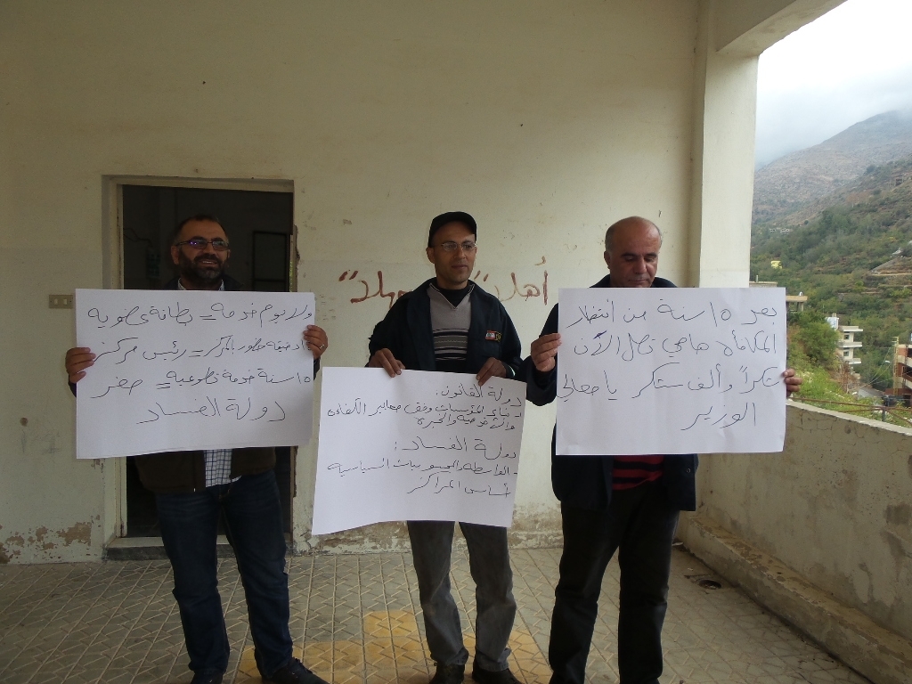 وتحدث بالمناسبة، المتطوع هشام هاشم باسم العناصر المتطوعة في المركز، وقال:" نرفض هذا القرار الجائر بحقنا، لقد اصبح لنا اكثر من 14 سنة نعمل فيه وقمنا بتضحيات جمة وعمليات إطفاء حرائق وانقاذ دون ملل أوكلل، وإذ نتفاجأ بتعيين رئيس للمركز من خارج عناصر المركز، الذي ليس لديه كفاءة بعملية الاطفاء. كما اننا ليس لنا عداوة شخصية ضد هذا الشخص".