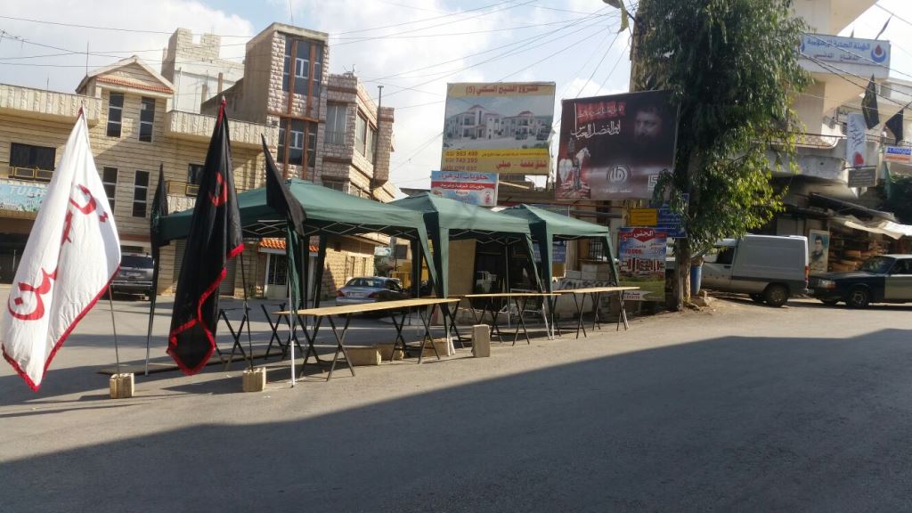 فاتشحت البلدة بالسواد، وغطت اللافتات والجداريات المذيلة بالشعارات الحسينية والدينية وأقوال الإمام الحسين، التي رفعها الشبّان، الشوارع والساحات.