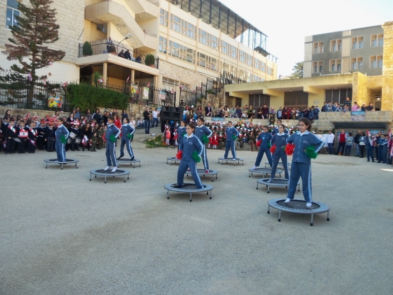 وبعد كلمة باسم الطلاب القاها الطالب معن سعسوع اقيم عرض عسكري رمزي لطلاب الصفوف الابتدائية الذين ارتدوا الثياب العسكرية واعتمروا قبعات باشكال العلم اللبناني، وقدموا اغنيات وطنية حماسية خاصة بالمناسبة. بالاضافة الى عروض رياضية منوعة باشراف مدرب الرياضة جوني لبكي، واغاني وطنية حماسية خاصة بالمناسبة قدمها الاطفال الصغار ملوحين بالاعلام اللبنانية وشعار الجيش".
