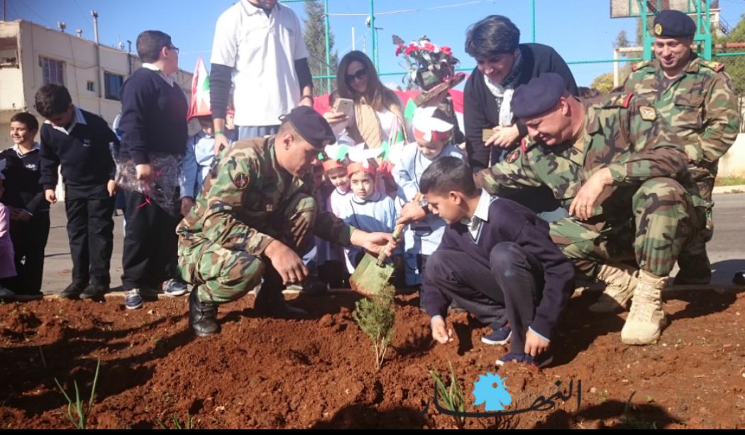 وتخليدا لهذه الذكرى، زرعوا شجرة أرز في باحة الثكنة حيث أنشدوا النشيد الوطني اللبناني والاغاني الوطني والعسكرية. والقى التلميذ حسين علي احمد كلمة بإسم المدرسة قال فيها: "هالارزة اللي نزرعت بلنان وتحدت، رح نزرعها بكل مطرح لتضل عنوان المجد والعنفوان ورمز لبنان اللي ما بتزعزعو ريح ولا عاصفة". وتسلّم عون من التلامذة مجسّم أرزة كتبوا عليها قسمهم بالبقاء اوفياء لأرضهم وحمل راية وطنهم، موحّدين ومتضامنين مع جيشه. وأوصاهم عون محبّة الوطن والدفاع عنه والتمسّك بالعلم اللبناني، ثمّ عرضت عناصر الجيش بعض الآليات العسكرية والأسلحة التي تستخدمها.