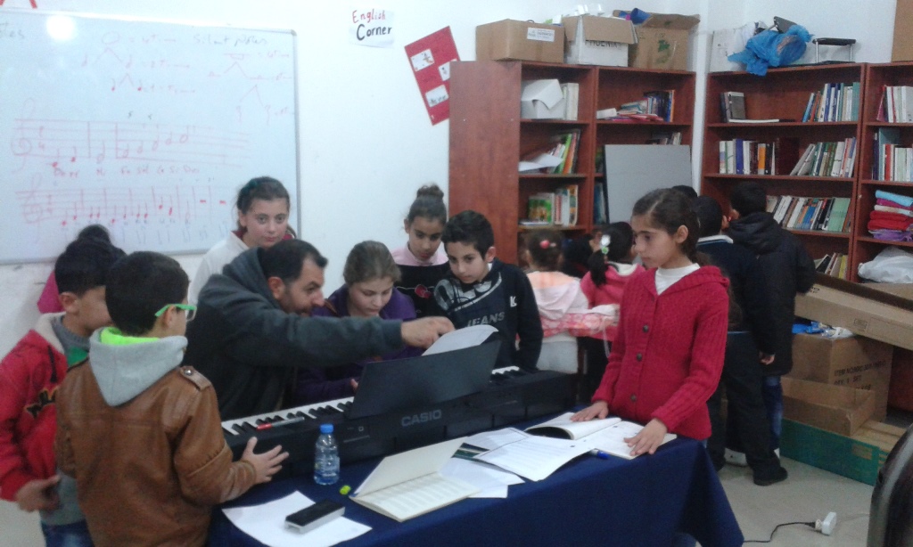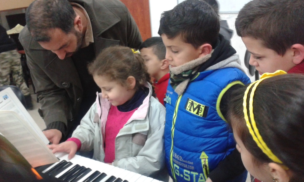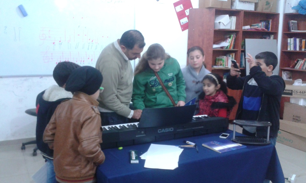 كما اريد ان اشكر السية منى كامل مرقص على تلبية حاجتنا الى صف الموسيقى ورعايتها لهذه الدورة والاستاذ انيس والطلاب الذين تجاوبوا معنا على امل تخريج اول دفعة في نهاية هذا العام ..