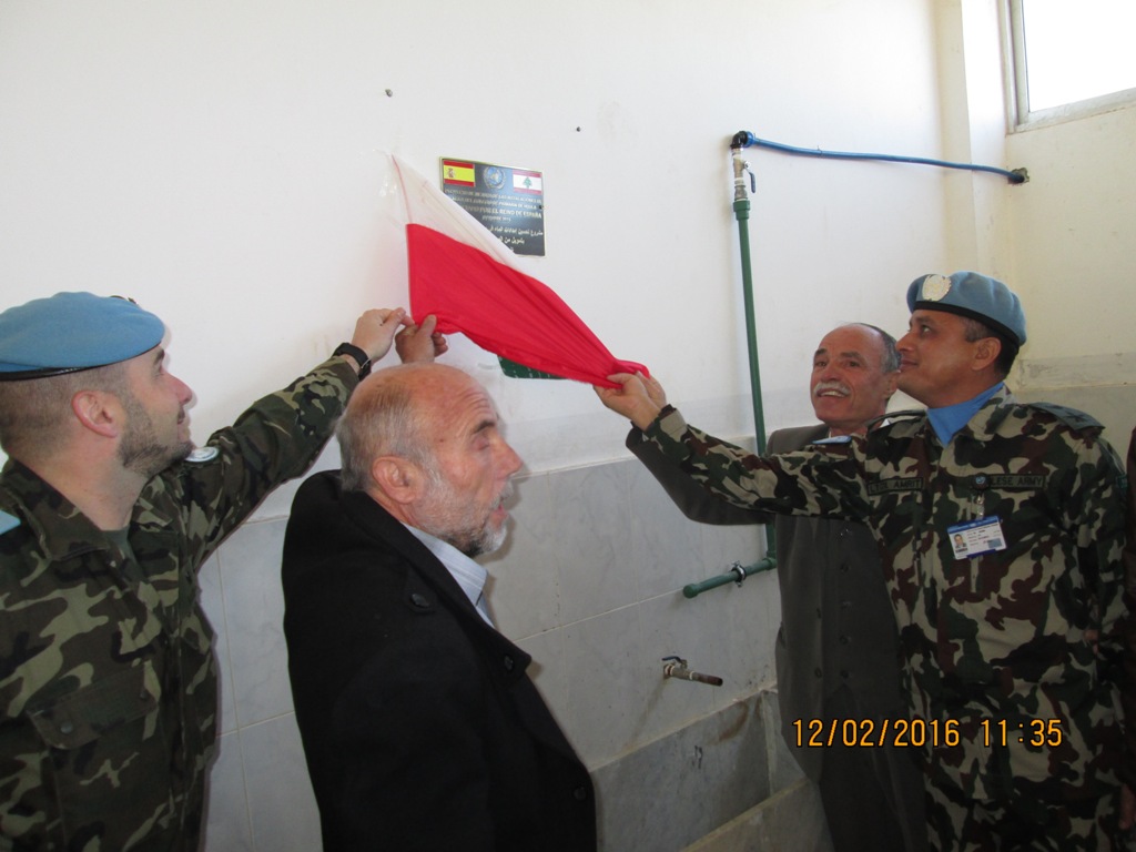 ضمن إطار تنفيذ المهمات الموكولة اليها بموجب قرار مجلس الامن الدولي 1701، وبهدف توطيد أواصر الصداقة والتعاون مع السكان المحليين في منطقة عملها. دشنت الكتيبة الاسبانية العاملة فى قوات "اليونيفيل" المعززة في الجنوب، بالتنسيق مع الكتيبة النيبالية، مشروع تجهيز خزان مياه جديد وفيلتر مياه وموزع كلور لتوفير مياه شرب نظيفة لطلاب مدرسة حولا الرسمية في قضاء مرجعيون وتأهيل مغاسل ومراحيض المدرسة، بتمويل من المملكة الاسبانية، بكلفة قدرها 7000 $ أميركي.