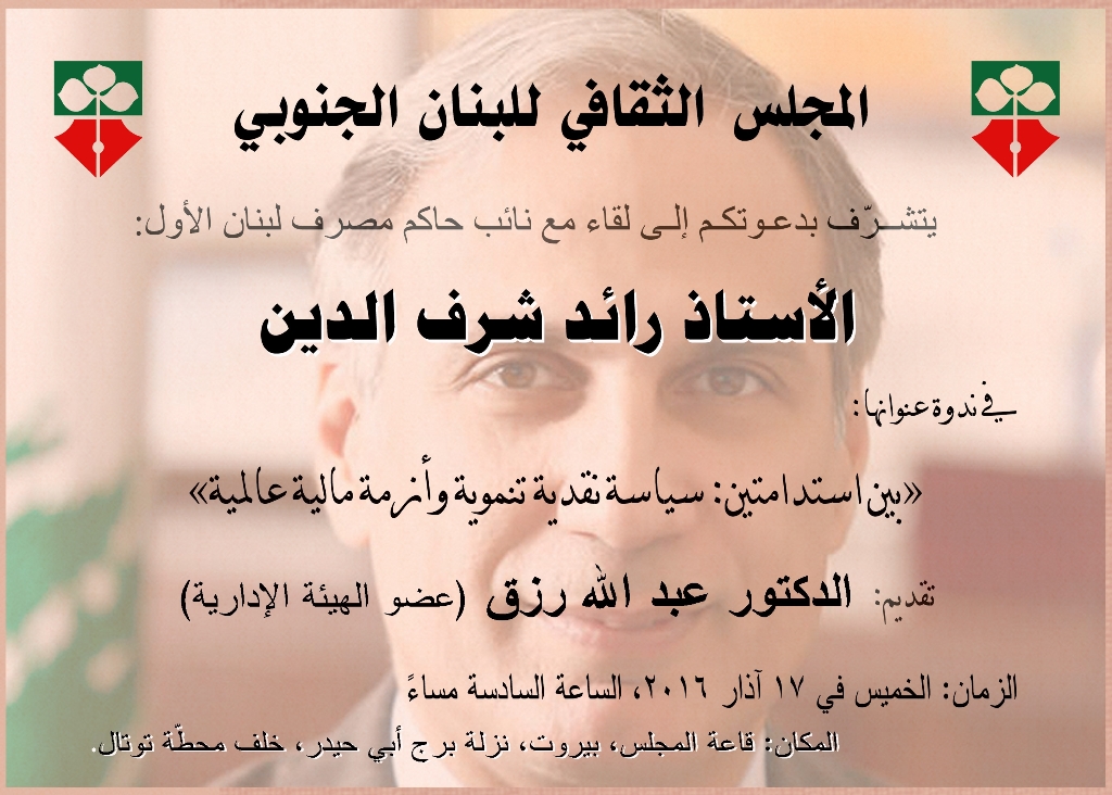 دعا المجلس الثقافي للبنان الجنوبي إلى حضور لقاء مع نائب حاكم مصرف لبنان الأول