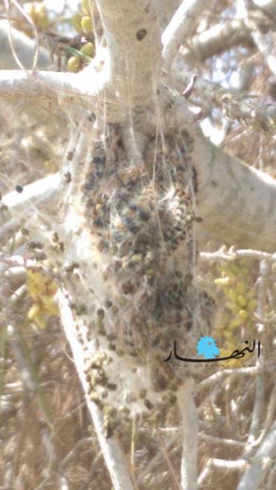 معظم اشجار الصنوبر تحوّل لونها من الأخضر الى البنّي وتحوّلت ثمارها بيوتا من خيطان نسجتها دودة الصندل التي تتغذّى من اغصانها الخضراء وتبني اعشاشا لها فيها للتناسل. وتنتقل هذه الدودة من شجرة الى اخرى وتتسبّب ايضا بحساسية للمواطنين الذين يقتربون من الاشجار. و يذكر بعض المعنيين ان الصيد هو سبب اساسي في تزايد هذه الدودة التي تقضي عليها بعض انواع الطيور، وان نفقات القضاء عليها باهظة بالنسبة للمواطنين الذين يلجأون الى قطع الاشجار اليابسة تحسبا من انتقال العدوى الى باقي الاشجار، الا ان هذا الحلّ لا يُعتبر جذريا فالحاجة الى رشّ الاحراج بالمبيدات أمر ضروري ومستعجل قبل ان يفتك المرض بكل الاشجار.