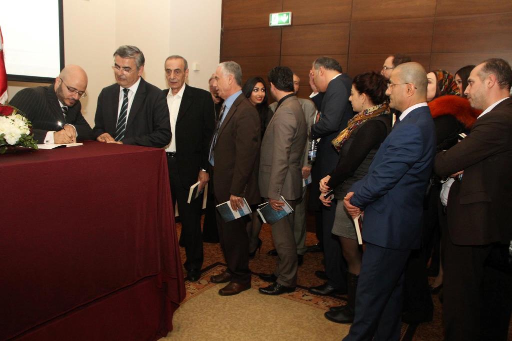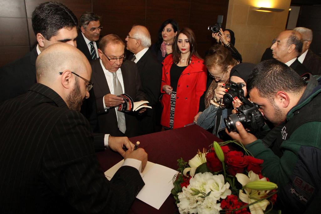حضر الحفل عدد من الفعاليات والشخصيات تقدمهم ممثل مفتي الجمهورية الشيخ عبداللطيف دريان الشيخ بلال الملا، ممثل قائد الجيش العماد جان قهوجي العميد الركن حسني ضاهر، ممثل الرئيس العماد ميشال عون المحامي رمزي دسوم، العميد مصطفى حمدان أمين الهيئة القيادية في حركة المرابطون ، القاضي الرئيسة ثريا صلح، ممثل نقيب المحامين الشيخ انطونيو الهاشم المحامي ناجي خميس، نقباء المحامين السابقين النقيب عصام كرم والنقيبة أمل حداد والنقيب محمد شهاب ، الأستاذ معن بشور رئيس تجمع اللجان والروابط الشعبية، المحامي أحمد مرعي نائب رئيس حزب الإتحاد، ممثل عن رئيس المؤتمر الشعبي اللبناني الاستاذ كمال شاتيلا ، رئيس الحركة الثقافية الأستاذ بلال شرارة، المؤرخ الدكتور حسان حلاق، رئيس لجنة الحريات وحقوق الإنسان في نقابة المحامين الدكتور عبد السلام شعيب، أمين سر صندوق التقاعد في نقابة المحامين المحامي سعيد علامة، رئيس قلم محكمة الإفلاس في بيروت الأستاذ جهاد مشموشي، كاتب عدل بيروت الاستاذ أحمد ضاهر، نائب رئيس الاتحاد الدولي لكمال الأجسام الأستاذ مليح عليوان، الدكتور محمد مكي رئيس إتحاد الجمباز اللبناني، الشاعر الأمير طارق آل ناصر الدين، الأستاذ عماد عكاوي رئيس هيئة الإسعاف الشعبي، الدكتورة الجامعية والكاتبة منى فياض، المرشح السابق لمركز نقيب المحامين المحامي عزيز طربيه، عبدالله نجم رئيس اتحاد الشباب الوطني، عدنان برجي عضو هيئة التنسيق النقابية، الإعلامية مارلين دياب، وعدد كبير من المحامين والفعاليات الحزبية والسياسية وعدد من الشعراء والأصدقاء والأقارب .