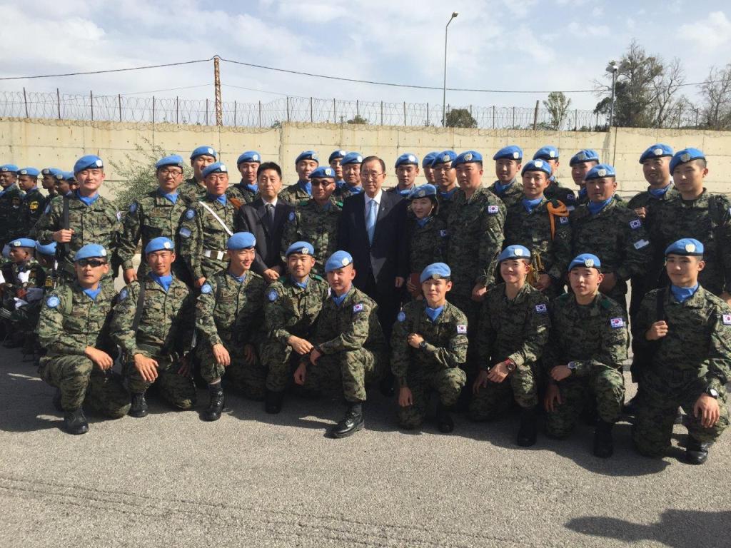 بعد ذلك، قدم الجنرال بورتولانو الى ضيفة درعا تذكاريا، كما التقط بان كي مون صورة تذكارية مع الوحدة الكورية الجنوبية التي تنتمي الى بلاده.