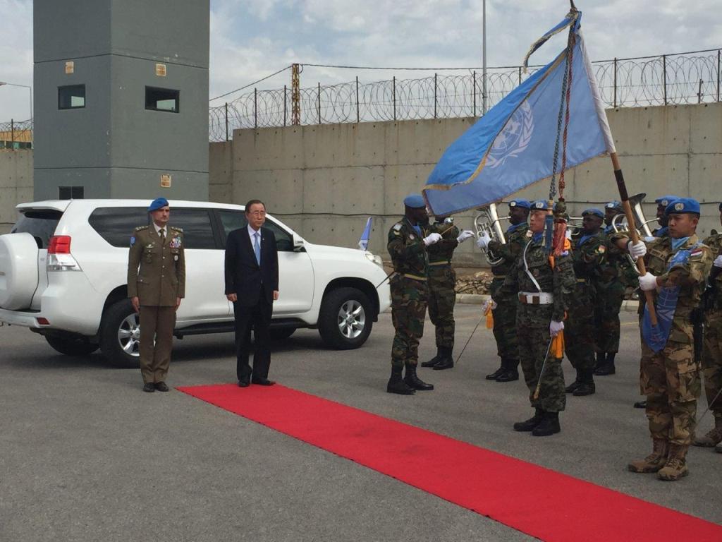 تفقد الامين العام للامم المتحدة بان كي مون مقر قيادة القوات الدولية العاملة في الجنوب، التي وصلها على متن مروحية دولية حطته في مهبط المروحيات في الناقورة، حيث كان في استقباله القائد العام الميجور جنرال لوتشيانو بورتولانو وكبار ضباط القيادة .