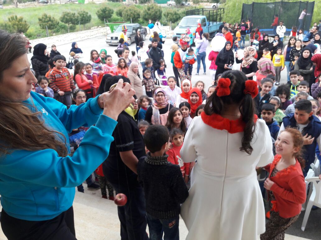 وبعد المسرحية رقصوا وغنوا مع ماريو ودبدوب ورقصوا مع الكلون وساد جو من المرح مع المسابقات . شد الحبل والسباق باكياس الجنفيص ورسم على الوجوه ومسابقة التفاحة وسط تصفيق وتشجيع للمتباريين كما وزع للاطفال 250 هدية قدمها جنود من الكتيبة الاسبانية وهنا اريد الاعتذار من الاطفال الذين لم يحصلوا على هدية كل عام واطفالنا سعداء وآمنين