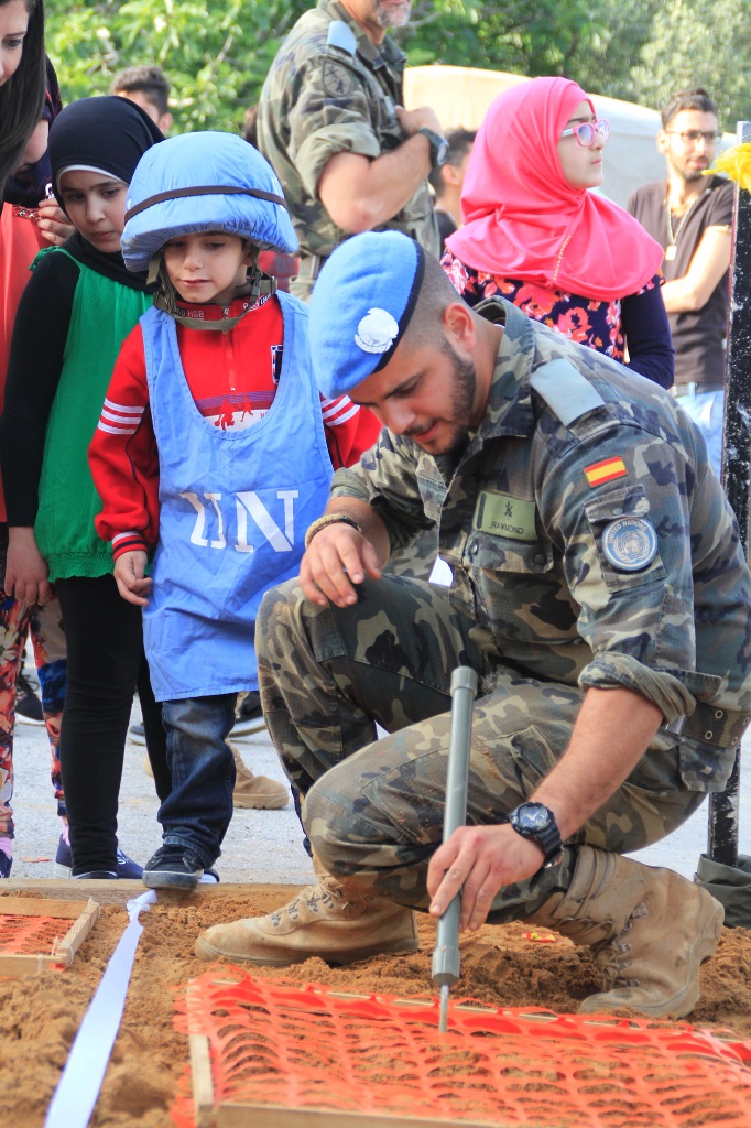 الهدف الرئيسي من هذا الحدث هو نشر التوعية عن مخاطر الألغام والقنابل غير المنفجرة خاصةً بين الأطفال. لذلك، نصبت الكتيبة الإسبانية خيمتين. إستُعملت الأولى لإجراء عرضٍ تفاعلي ولوضع علاماتٍ على الألغام بينما كانت عناصر أخرى من الكتيبة الإسبانية تقوم بشرحٍ لهؤلاء الأطفال عن كيفية الكشف والتعرّف على الألغام. كما تعلّموا أيضاً كيفية حماية أنفسهم وتجنّب مناطق الخطر المعروف أنها تحتوي على ألغامٍ أو قنابل غير منفجرة. أما في الخيمة الأخرى، فقدّ تمّ عرض أنواع مختلفة من الألغام والقنابل التي يتم العثور عليها غالباً. كذلك، إطّلع الأطفال على شرحٍ حول الكشف عن الألغام وإبطال مفعولها بواسطة رجلٍ آلي.