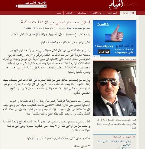 والموقع على استعداد لتقبّل ونشر بيانات وآراء وبرامج عمل والسير الذاتية لكافة المرشحين للإنتخابات البلدية والإختيارية ويبقى على مسافة واحدة من الجميع.