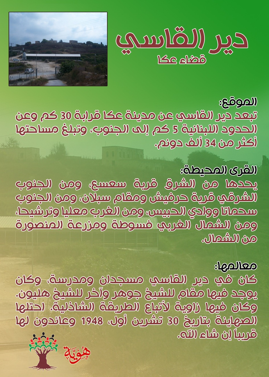 منطقة جميلة في اعالي الجليل ,وعلى اليمين مستوطنة يهودية تسمى الكوش ,اقيمت على انقاض القرية الفلسطينية دير القاسي,