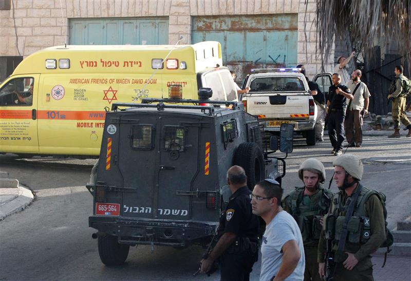 استنفار قوات الاحتلال بعد مقتل الشهيد فارس موسى محمد خضور قرب مدخل مستوطنة كريات اربع في الخليل أمس (أ ب أ)