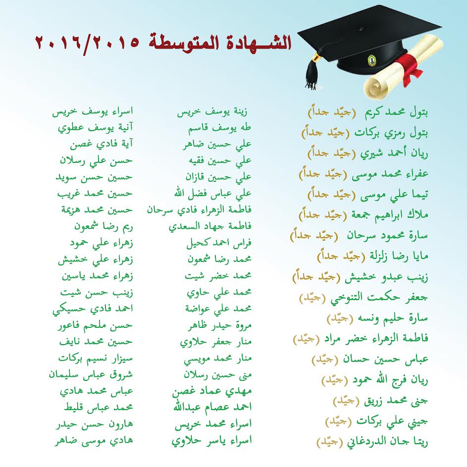 تستعد ثانوية عيسى بن مريم (ع) ومبرة النبي إبراهيم (ع) - الخيام لإقامة حفل تكريمي لطلابها الناجحين والمتفوقين في الشهادة المتوسطة والثانوية للعام الدراسي 2016/2015