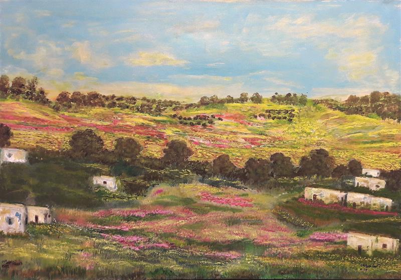 وبما أن أكثر ما ترسّخ في ذهن حسن عبدالله وذاكرته كانت مشاهد الطفولة، وما بعدها، المرتبطة ارتباطاً واثقاً بالمكان والمحيط الذي ولد ونشأ فيه في جنوب لبنان، وفي بلدة الخيام تحديداً، فقد جاءت أعمال المعرض كلها ذات صلة مباشرة بالمشهد الطبيعي، القريب من الحقيقة أو المتخيّل، من دون أن يعني ذلك أن عبدالله كان جلس في الواقع أمام المشهد كي ينقل بعض مكوّناته، أو لجأ إلى صور فوتوغرافية تعكس أمكنة في عينها. عاد إلى «صور الداخل»، كما يسمّيها، كي يرسم، بتقنية الأكريليك، مشاهد بعضها على القماش وبعضها الآخر على الورق تجسّد طبيعة بكراً، أو شبه بكر، حافظت على سهولها وهضابها وأشجارها، ولم تخترق مفاصلها سوى بيوت تبدو أنها تراثية، طينية وصغيرة الحجم. تتشابه البيوت في لوحة حسن عبدالله، أكان من حيث الحجم أم من حيث تماثل أشكالها ومداخلها بعضها مع البعض الآخر. ربما كان في هذا القرار ما يشير إلى التماثل القائم، أو بالأحرى الذي كان قائماً، لدى سكانها في طرق العيش، وفي المستوى المعيشي ذاته، كما هي الحال في القرى والبلدات الواقعة في الأرياف، قبل أن تمتد إليها يد «الحضارة» وتشوّه معالمها البسيطة والوادعة.