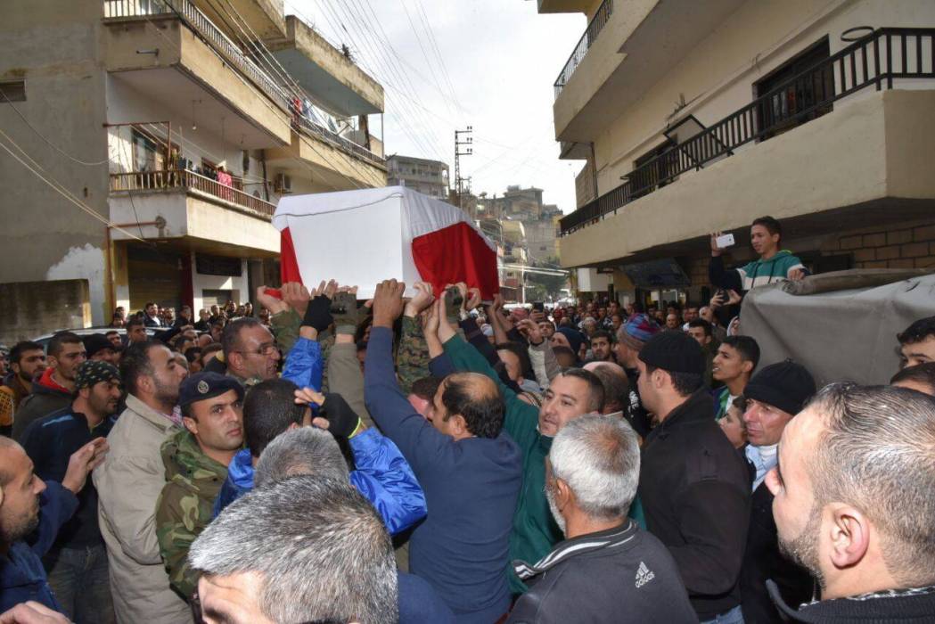 انطلقت المسيرة من مدخل البلدة وصولاً الى منزله العائلي لتلقى عليه نظرة الوداع الاخيرة لينقل بعدها الى مسجد البلدة الكبير حيث اقيمت الصلاة. وقدمت له ثلّة السلاح التحية العسكرية وتقدم المشيّعين ممثل قائد الجيش العقيد توفيق يزبك وضباط وممثلون عن القوى الامنية والعسكرية ورؤساء اتحادات بلدية وبلديات ووجهاء وفعاليات المنطقة.