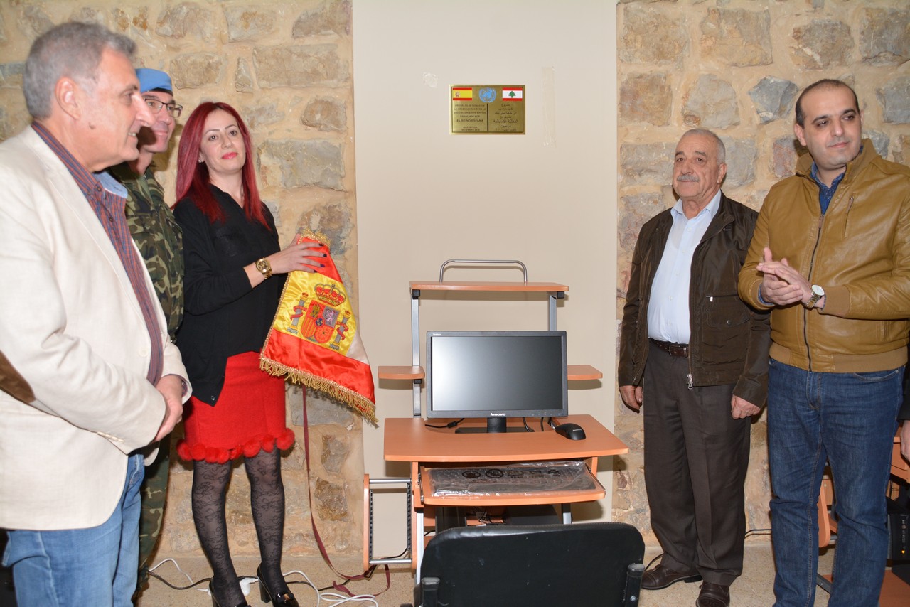 إفتتح قائد الكتيبة الإسبانية العاملة في القطاع الشرقي لليونيفيل مشروع "تجهيزات معلوماتية لجمعية بيتي بيتك" في مركز الجمعية المذكورة في جديدة مرجعيون بحضور مديرة الجمعية السيّدة رانيا عفيف ورئيس بلدية برج الملوك السيّد إيلي سليمان وقائد الكتيبة الإسبانية المقدّم رافاييل سالاس ومدراء عدة مدارس وأفراد من وحدة التعاون المدني العسكري وممثلين عن البلدة والبلدية والجيش اللبناني.