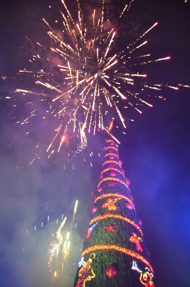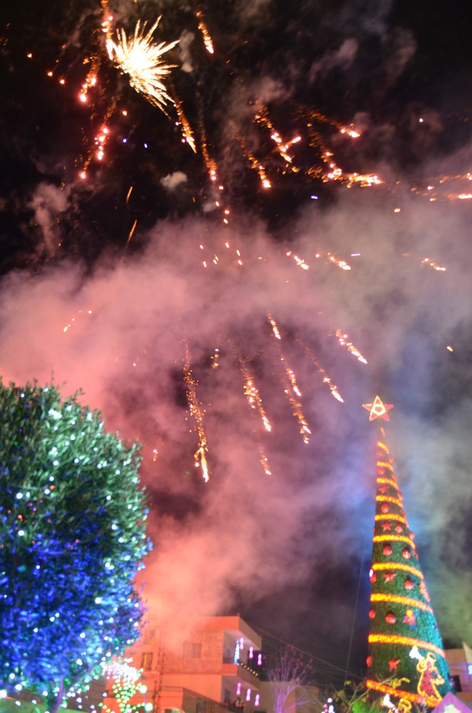 وعلى وقع الاغاني الميلادية رقص ثلاثون بابا نويل وشخصيات كرتونية محببة للاطفال وأُضيت شجرة الميلاد العملاقة و معها أضيئت زينة الطريق العام وبيوت قديمة مجاورة للشجرة. .