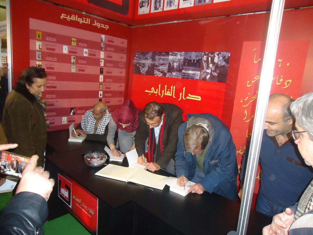 تحت عنوان حمل عبارة ناجي العلي "الطريق إلى فلسطين ليست بالبعيدة أو بالقريبة إنما بمسافة الثورة".. أقامت دار الفارابي ومنظمة الشبيبة الفلسطينية يومًا ثقافيًّا فلسطينيًّا، في معرض بيروت العربي الدولي للكتاب، مركز البيال، جناح دار الفارابي، وذلك احتفاء بالكتاب صلاح صلاح الذي وقع كتابه " من ضفاف البحيرة إلى رحاب الثورة"، وماهر الشريف الذي وقع كتابه" فلسطين في الكتابة التاريخية العربية"، ووداد طه التي وقعت رواية" حرير مريم"، وتكريمًا للكاتب والروائي والفنان التشكيلي الفلسطيني مروان عبد العال لمناسبة نيله جائزة القدس للثقافة والإبداع.