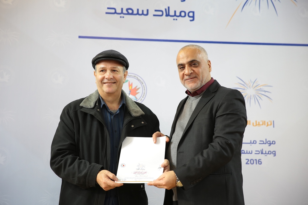 واستهل توزيع الدروع والشهادات باحتفالية خاصة بميلاد كريمة الشهيد محمد علي وهب التي صادف عيد ميلادها المناسبتين المقدستين ..