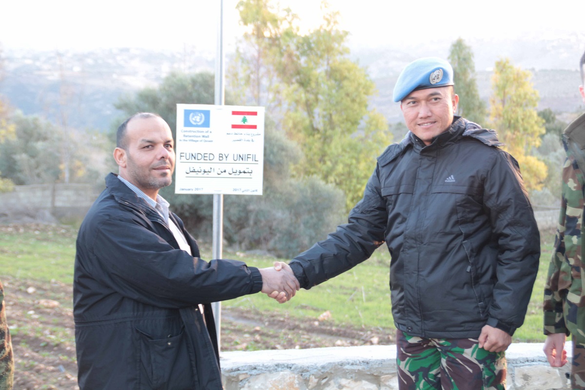 UNIFIL’S Sector East Indonesian Battalion’s officiating commander inaugurated project “STREET LIGHTS” in Deir Sirian and “RETENTION WALL” in Al Qusayr on this day in the presence of guests Mayor of the village Deir Sirian , municipality members, Lebanese Armed Forces representatives and local authorities.