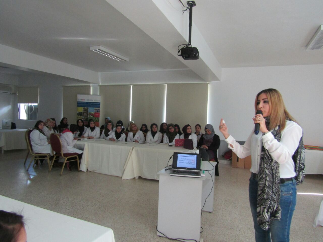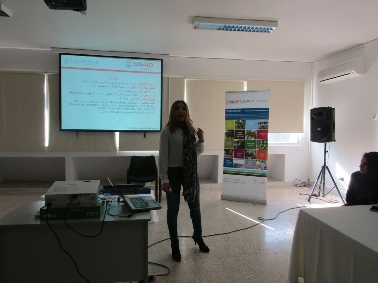 افتتحت الورشة أخصائية التجميل في الأكاديمية السيدة سميرة بصار عارضة للمتدربات تأثير المستحضرات التجميلية الطبية على البشرات بأنواعها، بعدها قامت الآنسة جورجيت لحود وفريق عمل Usaid بتقديم عرض مفصل حول أهمية فاكهة الأفوكا على الشعر والبشرة.