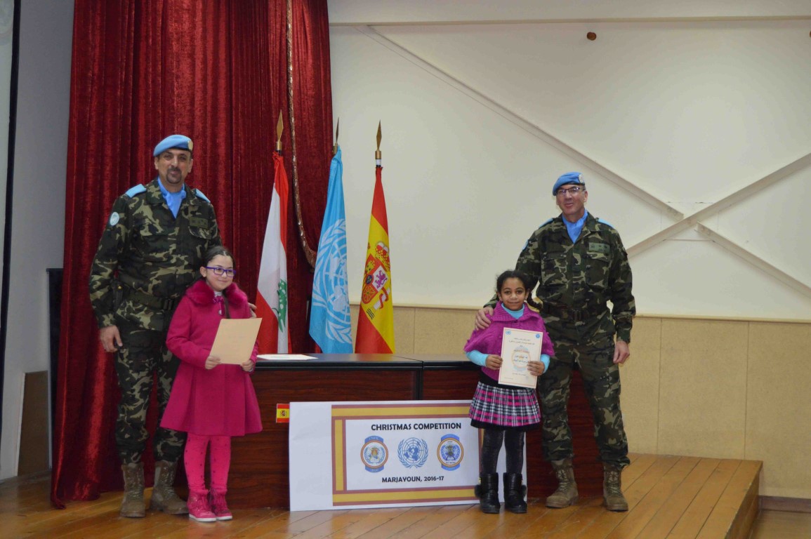 قامت الكتيبة الإسبانية بتوزيع الجوائز على الطلاب الفائزين بمسابقة الرسم الميلادية التي كانت قد نظمتها. شارك في المسابقة طلاب تراوحت اعمارهم ما بين ال8 و ال10 سنوات من المدرسة الإبتدائية الرسمية والمدرسة الانطونية ومدرسة مار جرجس في القليعة، والمدرسة الوطنية والقلبين الاقدسين والابتدائية الرسمية في مرجعيون كذلك المدرسة الابتدائية في إبل السقي.
