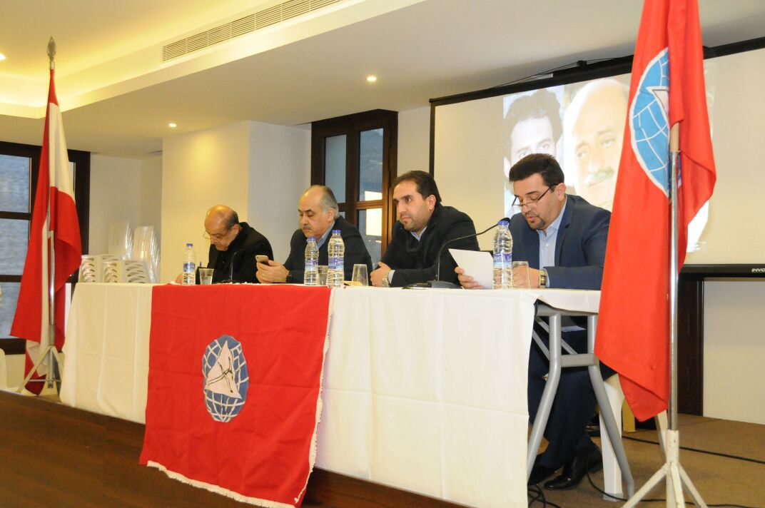 وقال: “تنعقد الجمعية اليوم ضمن سلسلة الجمعيات العمومية للحزب تحضيرا للمؤتمر العام الذي سيتم في اوائل شهر شباط القادم وهي تتويج لكل الجمعيات العمومية في لحظة سياسية دقيقة فحزبنا مر في مراحل سياسية صعبة ومصيرية في كل تاريخه من العام ١٩٤٩ حتى الان وهو اليوم امام مرحلة مصيرية. فالمعركة التي فتحت علينا تحت عناوين اصلاحية او عدالة التمثيل او تطوير النظام الانتخابي او غيرها الهدف منها واضح بالنسبة لنا فهو سياسي بامتياز. من هنا يجب ان نكون مدركين اهمية هذه المرحلة والتفاعل معها من ناحية ومواجهة المخاطر من ناحية اخرى بالحجة والحوار والجولة التي يقوم بها اللقاء الديمقراطي للقيادات والقوى السياسية لشرح الموقف والهواجس لدينا وليس لرفض النسبية:.