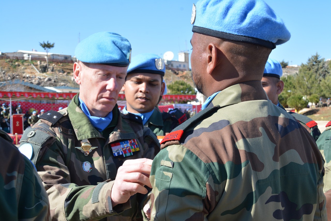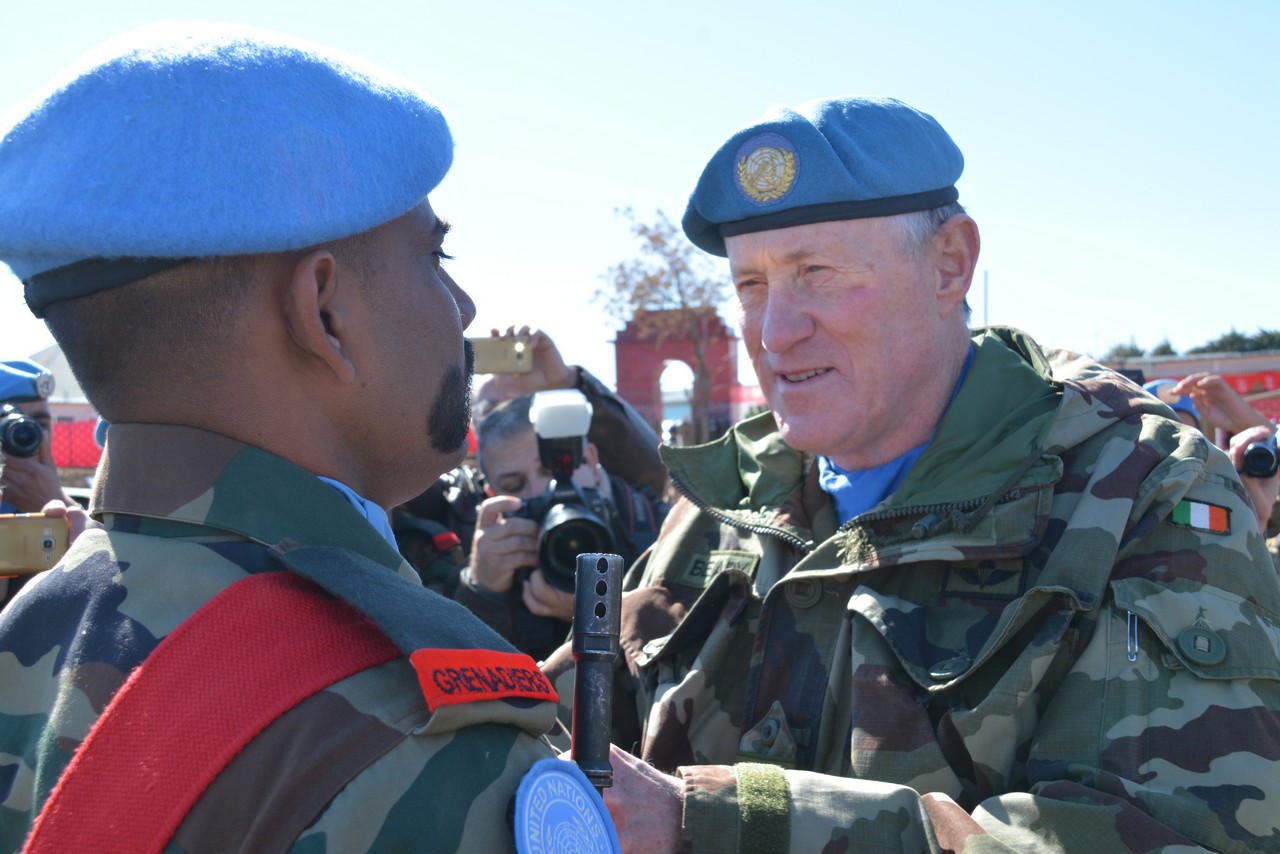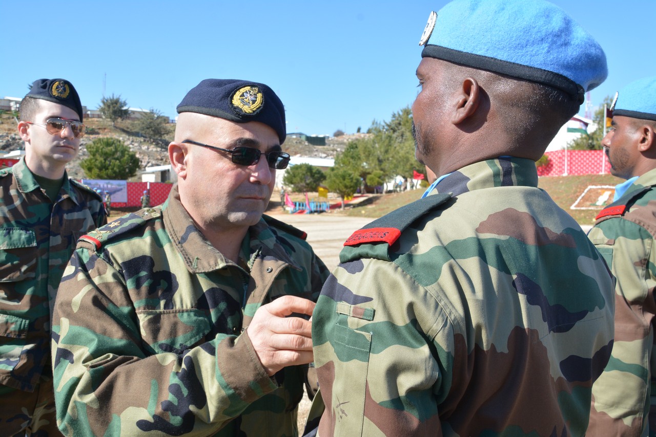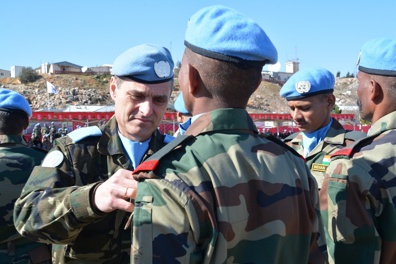 بداية تحية عسكرية للقائد العام لقوات اليونيفيل الجنرال مايكل بيري وعزف الاناشيد الوطنية وتقليد الاوسمة ، حضر حفل التقليد قائد منطقة جنوب الليطاني في الجيش اللبناني العميد الركن خليل الجميل وقائد اللواء السابع العميد الركن جورج نمور، قائد الكتيبة الهندية فرناندو سينغ وقادة الوحدات الدولية في القطاع الشرقي ورؤوساء بلديات ومخاتير ومدعووين .